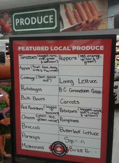 South Country Co-op on 13 Avenue SE makes a point of highlighting the vegetables that they source locally.